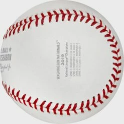 This Official MLB baseball features the Nationals team logo along with scores from each game to celebrate their historic series win. It comes packaged in a clear display case making it perfect for any Nationals fan or ball collector.