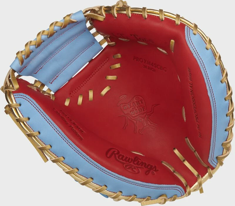 In addition to its amazing quality and durability, this Heart of the Hide catcher’s mitt was constructed in a 34-Inch YM4 pattern. The same gameday pattern of 9X Rawlings Gold Glove Award winner, Yadier Molina. Get his pattern in an eye-catching Columbia blue, Scarlet, and White design that will make everyone notice.