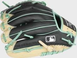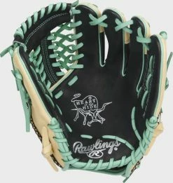 In addition, this glove was constructed in our popular 11.5-inch, 200-pattern – a popular choice among top pros around the MLB®. This R2G model was created with a Modified Trap-Eze web, which makes it a great option for both pitcher’s and infielders alike, thanks to its extreme versatility! The thermoformed wrist strap, deer-tanned cowhide lining, and padded thumb sleeve also provide optimal comfort – while the redesigned heel pad allows for an easier close as well. This HOH glove even features a classic black/camel design, topped off by the eye-catching mint laces and accents. When you make this your next gamer you’re sure to stand out on the field.