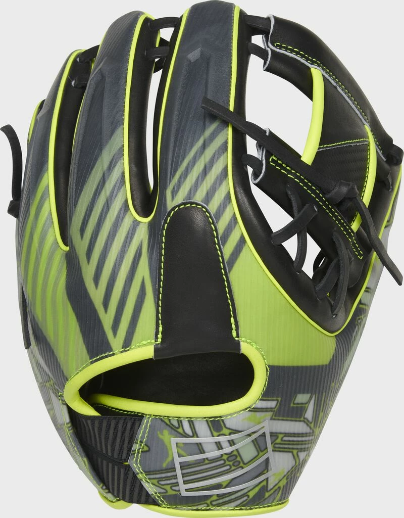 In addition, we’ve crafted our REV1X series gloves with a multi-layer back too. Each model even has its own molded, 3D-sublimated design. The 11.75-Inch REV1X glove is equipped with a stylish, eye-catching neon green and black design that is sure to turn heads on the field. The revolutionary lace-less I-web and heel will also help you stand out. This innovative new feature allows you to have a completely consistent feel, to make sure you’re snagging everything hit your way. And with the ultra-premium ‘HOH’ leather in all the right places, these REV1X gloves boast the same professional quality break-in & performance you expect from Rawlings.