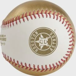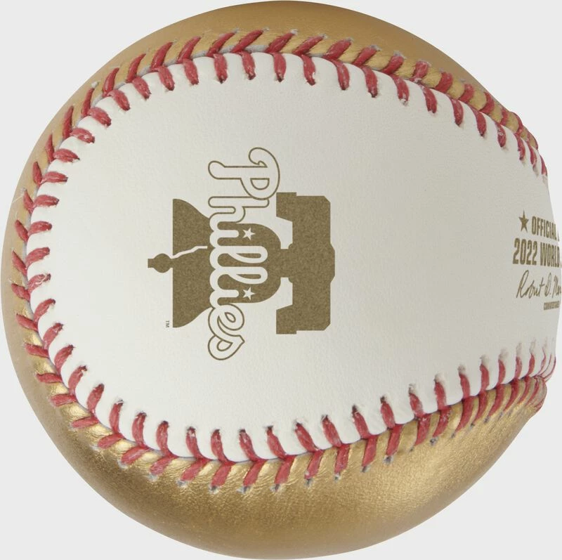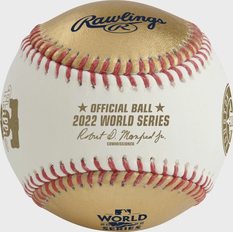 This 2022 Gold World Series dueling Baseball features the logos of the National League Champion Philadelphia Phillies and the American League Champion Houston Astros. In addition, it’s an ultra-unique white/gold baseball making it the perfect item to celebrate the 2022 World Series. Get your piece of history, buy now!