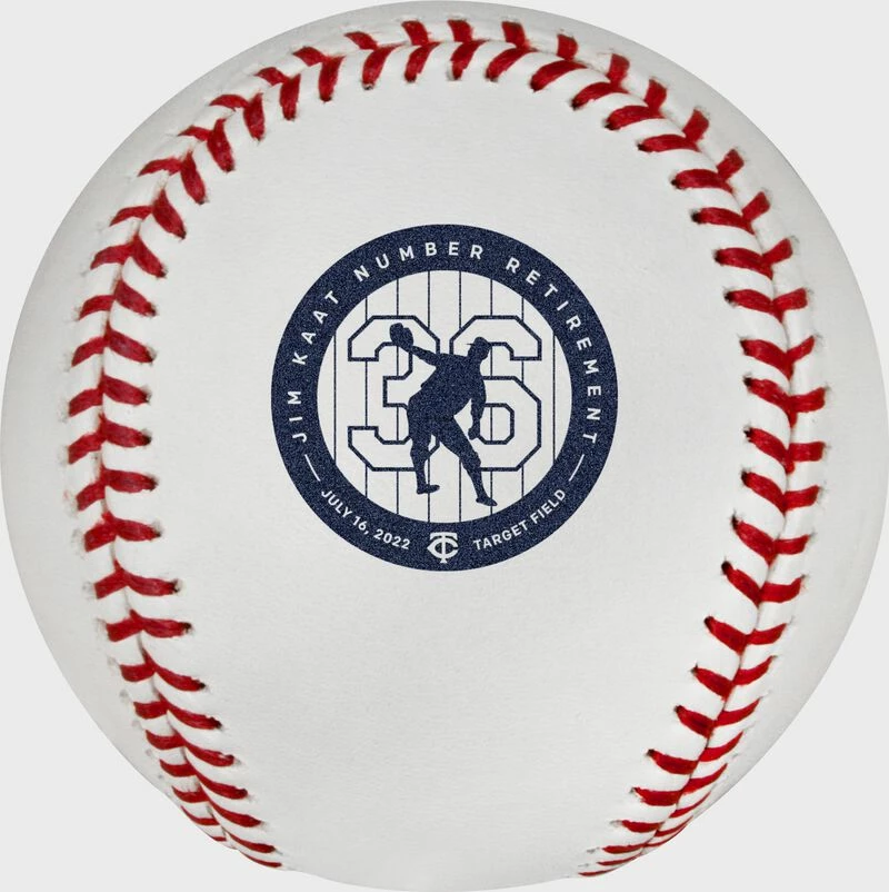 The MLB Jim Kaat number retirement commemorative baseball is the perfect item to celebrate Jim Kaat’s number being retired by the Minnesota Twins! Hall of Famer Jim Kaat was a monster on the mound. He fielded his position as well as anyone showcased by his 16 Rawlings Gold Glove Awards, tied for the 2nd most won by a single player! This ball features a commemorative number retirement logo stamped on an official MLB baseball. Order yours today!